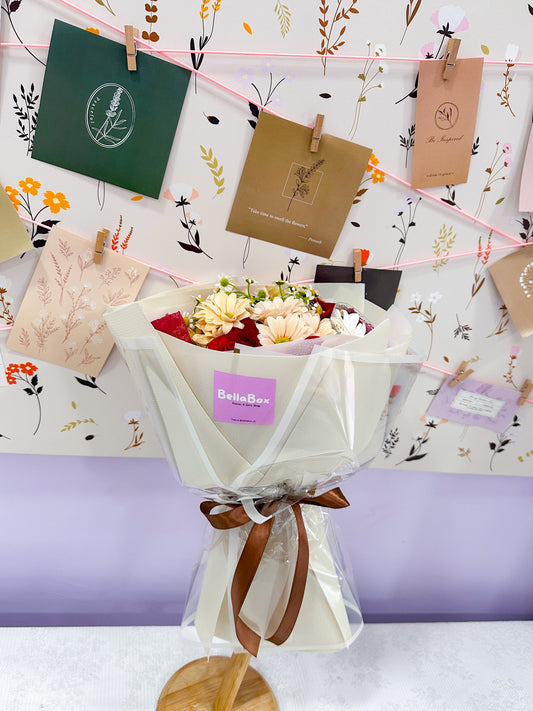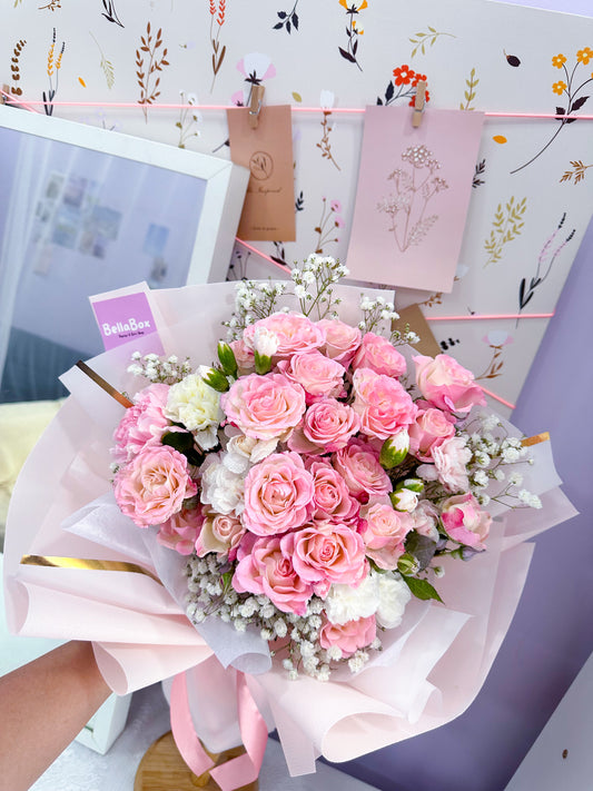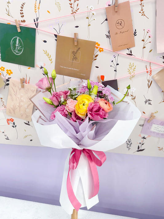 Fresh mix of pink Eustoma, maticaria & ammi majus