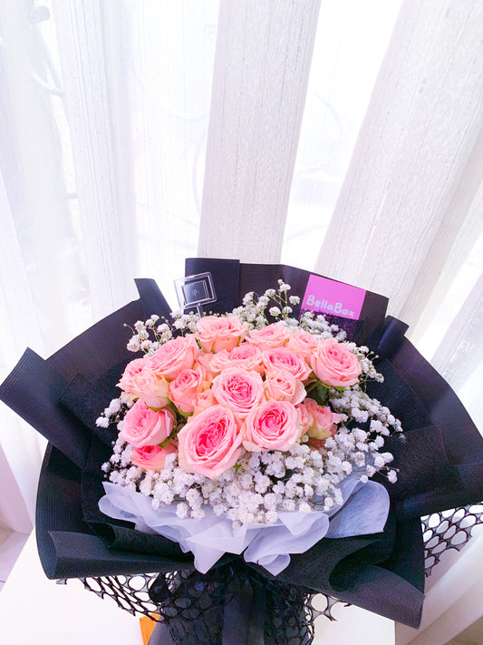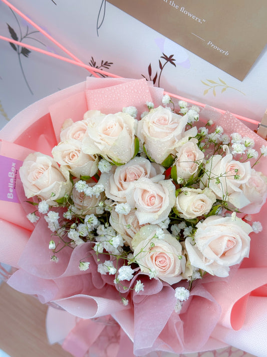 Fresh Cappuccino Rose with Pink Delphinium Grandiflorum