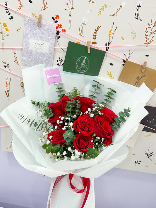 9 Stalk Red Roses with Eucalyptus
