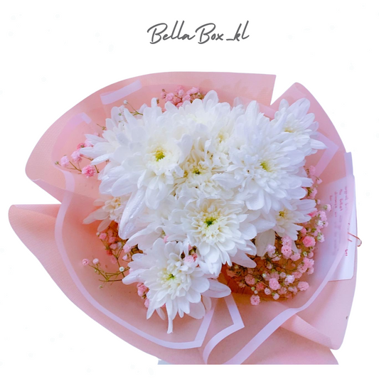 (S Size)White pom pom with baby breath